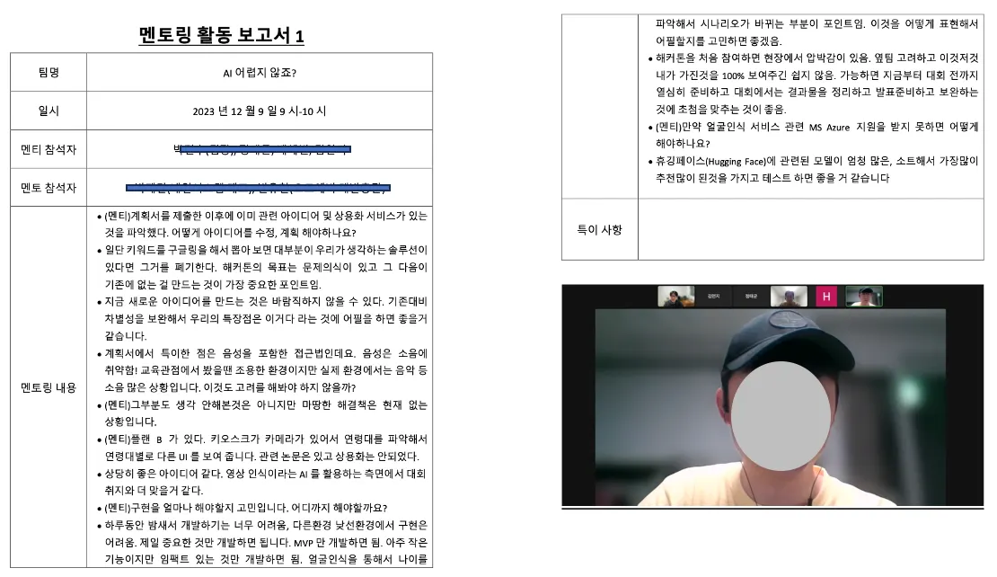 주제가 어려워 다들 고민이 많았는데 멘토링을 통해 좋은 방향으로 정할 수 있게 되어 큰 도움이 되었습니다!