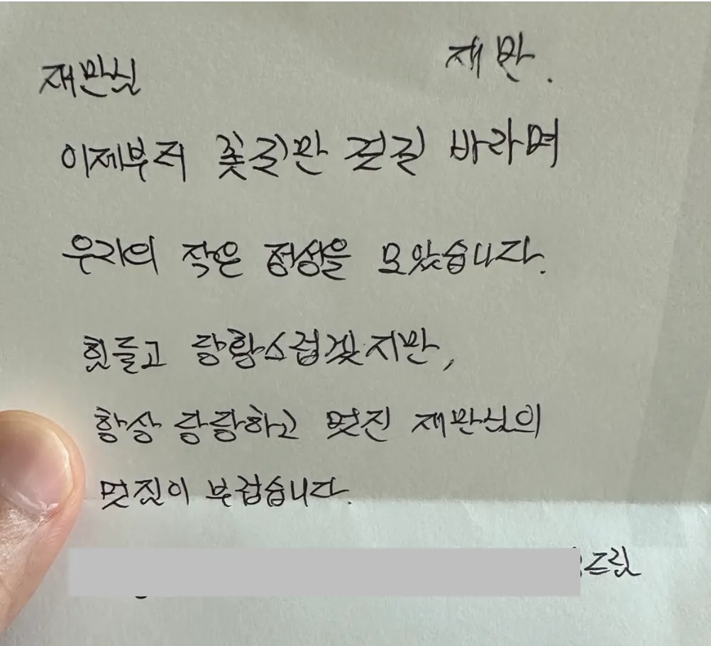 셀프환송회에서 동료들이 마련해준 축하케이크와 편지