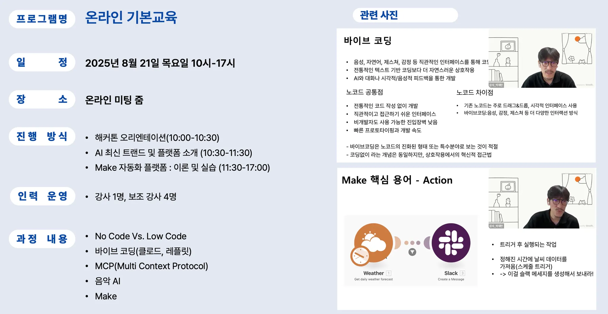 행사 일정 : (기본교육) 2025. 08. 21.(목) 10:00 – 17:00, 총6시간