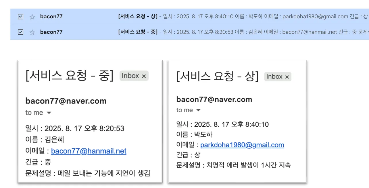 11.번 실습에서 라우터와 필터를 사용하여, 모든 서비스 요청에 대해 담당자 이메일로 알람을 보내고,