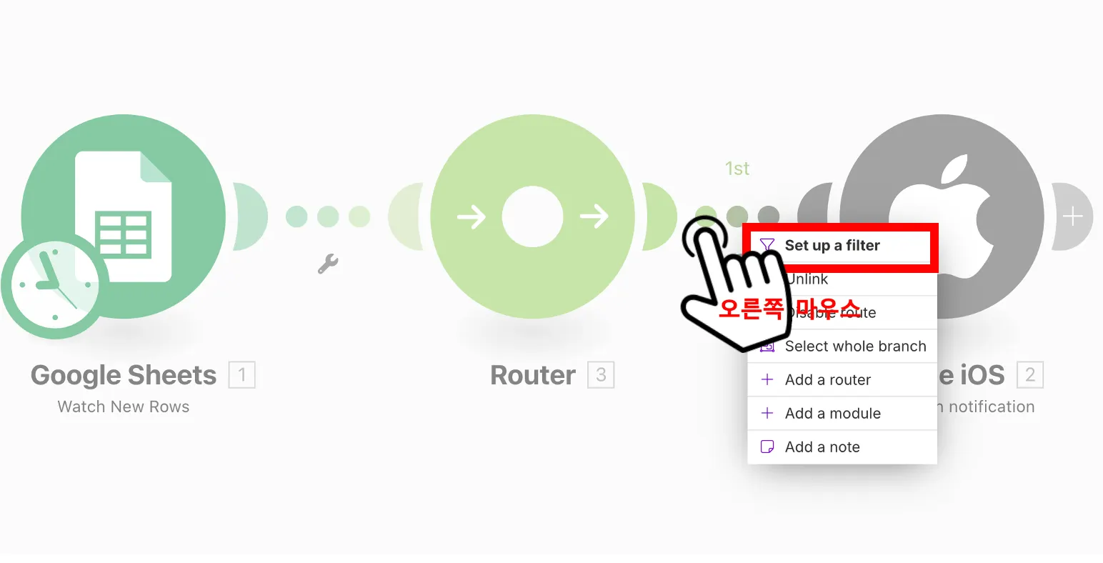 라우터와 Apple iOS(Android) 사이에 오른쪽마우스 > Set up a filter 클릭