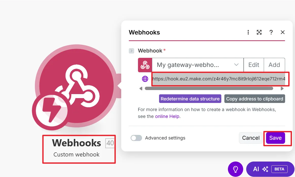 Webhook gateway를 생성했다면 자동생성되는 https:// …. ~ 주소 복사한 후 Save