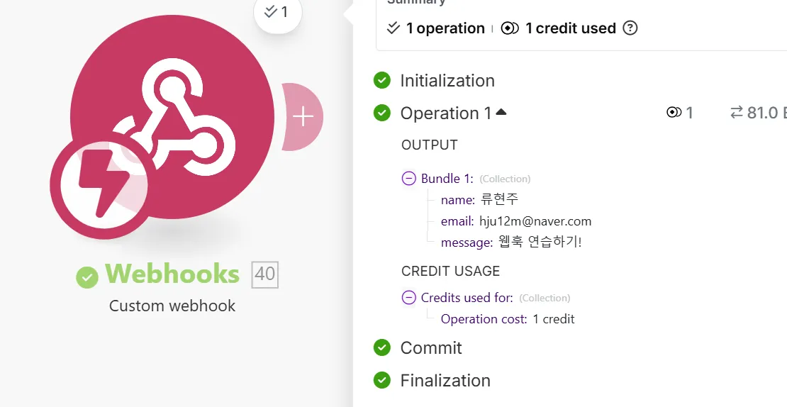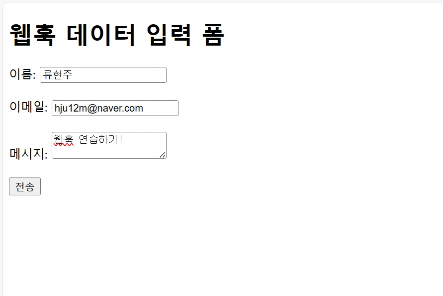주의: 폼 전송하기 전, 웹훅 실행 필수