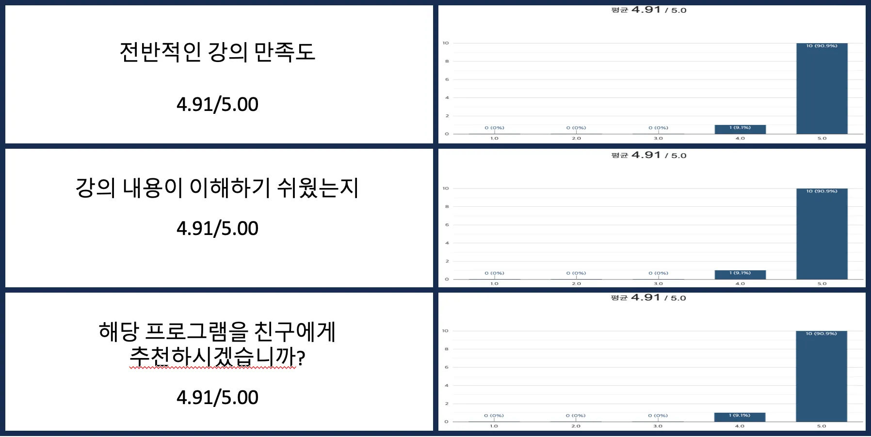 교육방법 : Zoom을 활용한 실시간 온라인 강의(평일) 및 오프라인 강의(주말)