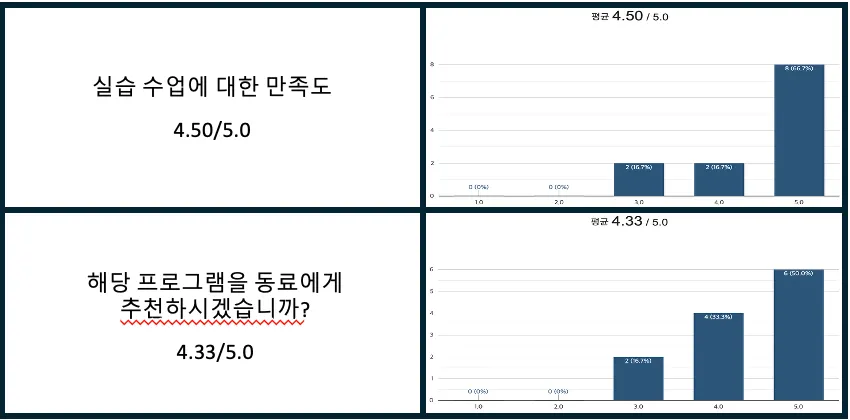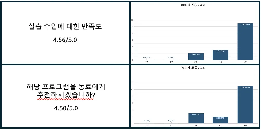 다양한 실습 희망하나 전체시간이 늘기에 주최하는 입장에서도 어려울 것 같습니다