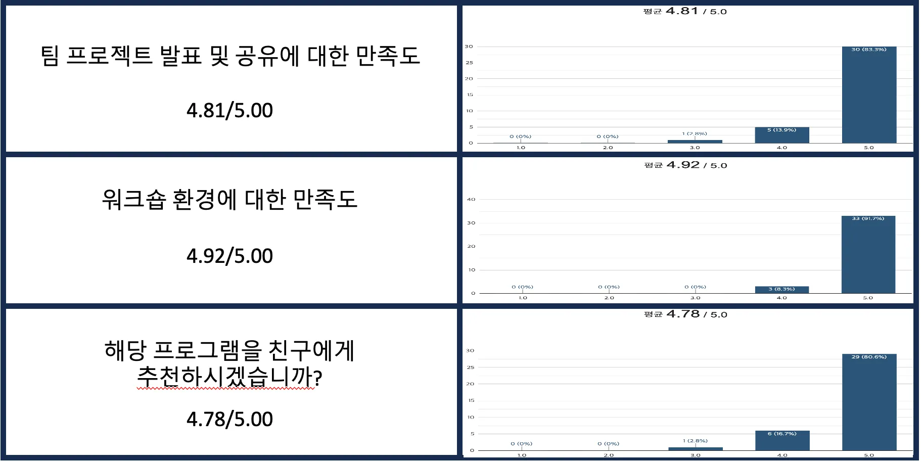 모든 분들께서 적극적이고 열정적으로 임해주셔서 인상깊었습니다. 내용도 실제로 적용할 수 있는 내용이 많아 큰 도움이 되었습니다. 감사합니다.