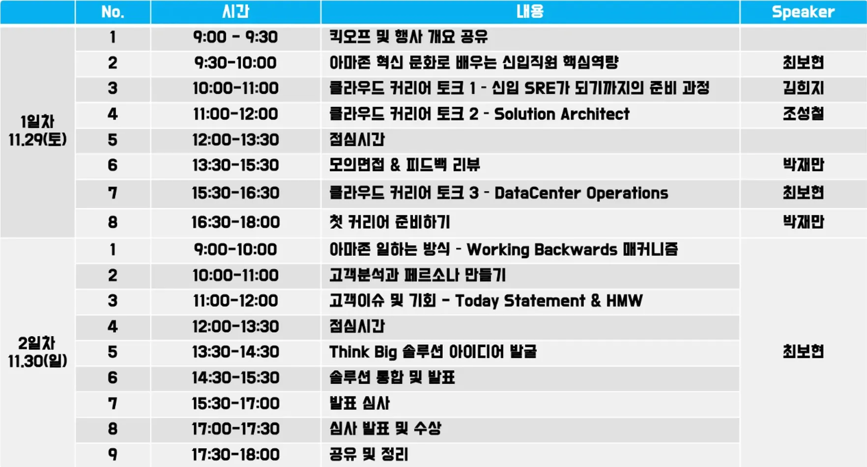 행사명 : 커리어 딥다이브 & 아마존워킹백워드 워크샵