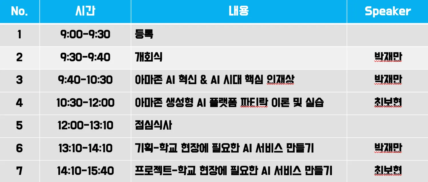 행 사 명 : 2025년 아마존(AWS) 기반 학교관리자 AI 역량강화 직무연수