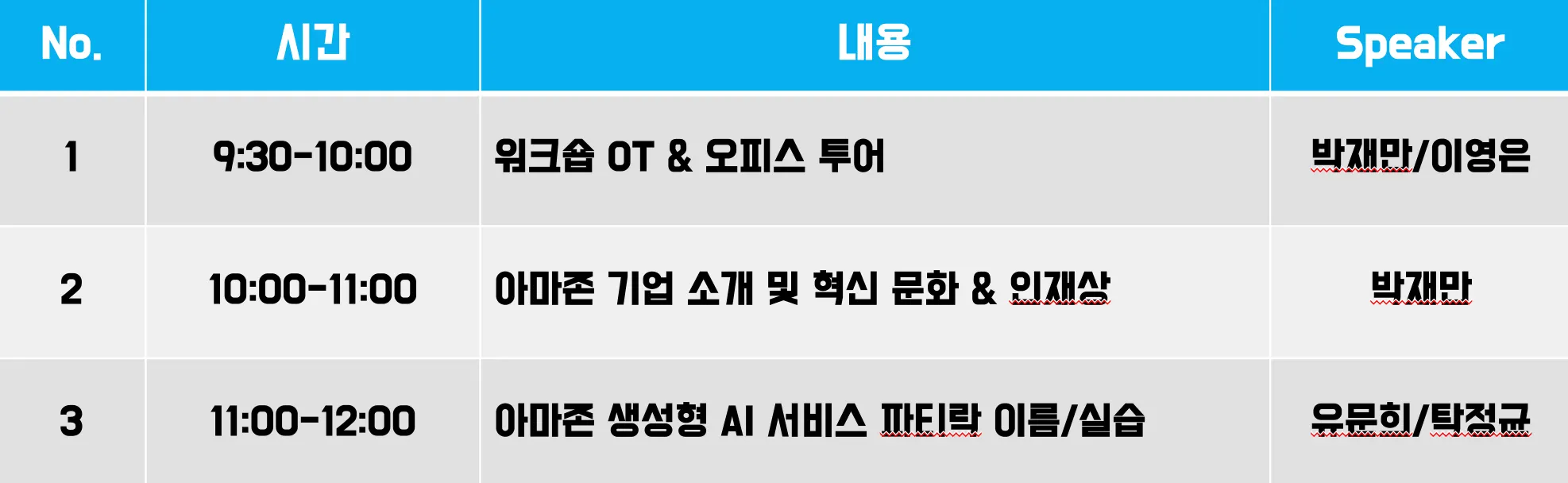 장 소 : 아마존웹서비스 서울 오피스 (센터필드, 18F)