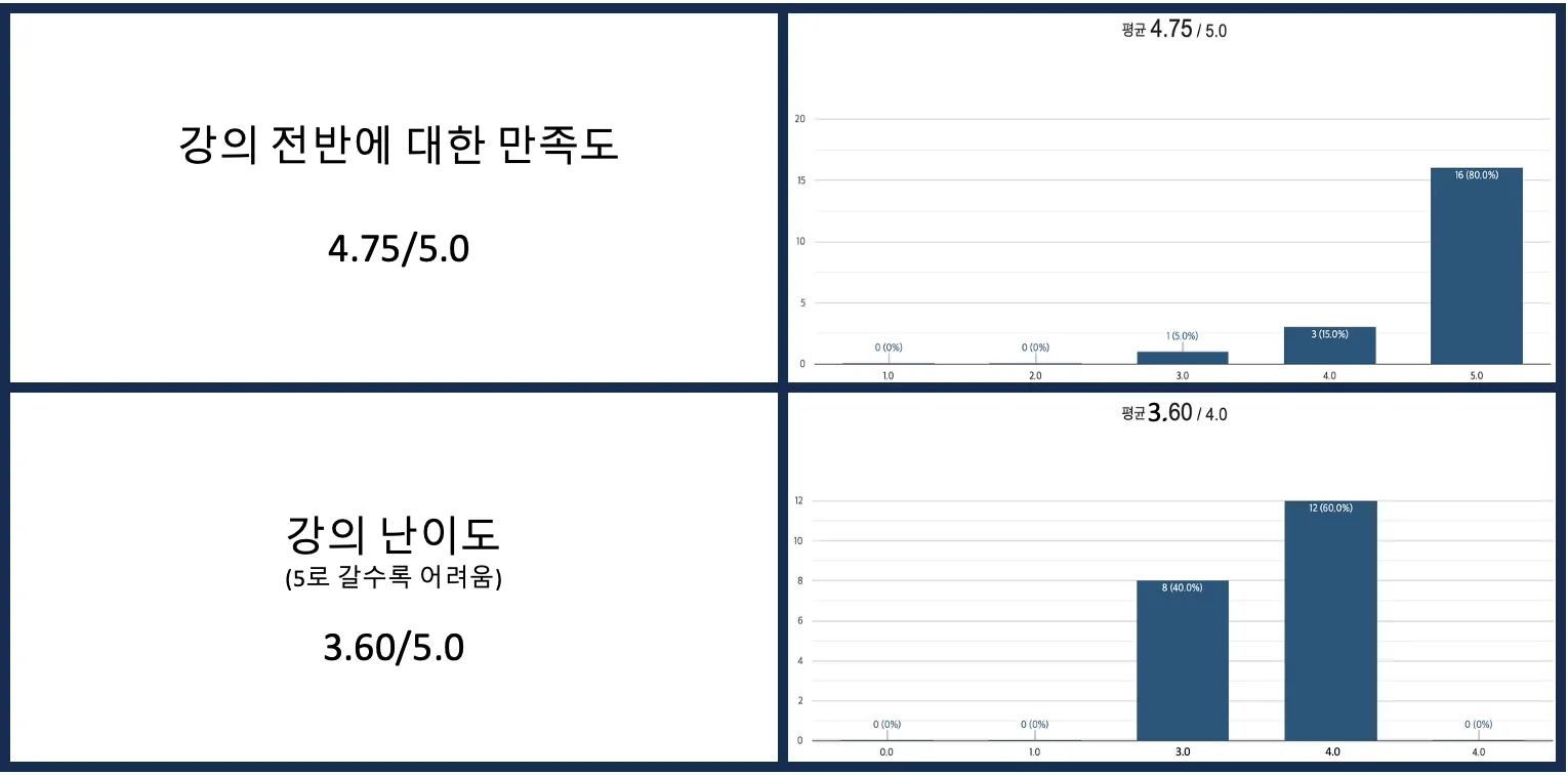 후반부로 갈수록 어려웠지만 도움이 필요한 학생들에게 친절하게 알려주셔서 감사하다.