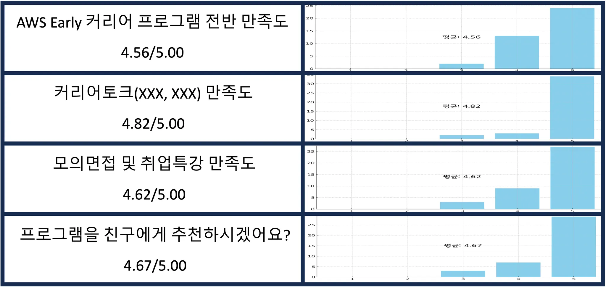 AWS 본사 투어 및 실제 클라우드 엔지니어 분들의 경험담을 들을 수 있어서 좋았고, 모의면접을 통해 자세한 피드백을 받을 수 있어서 도움이 많이 되었습니다!