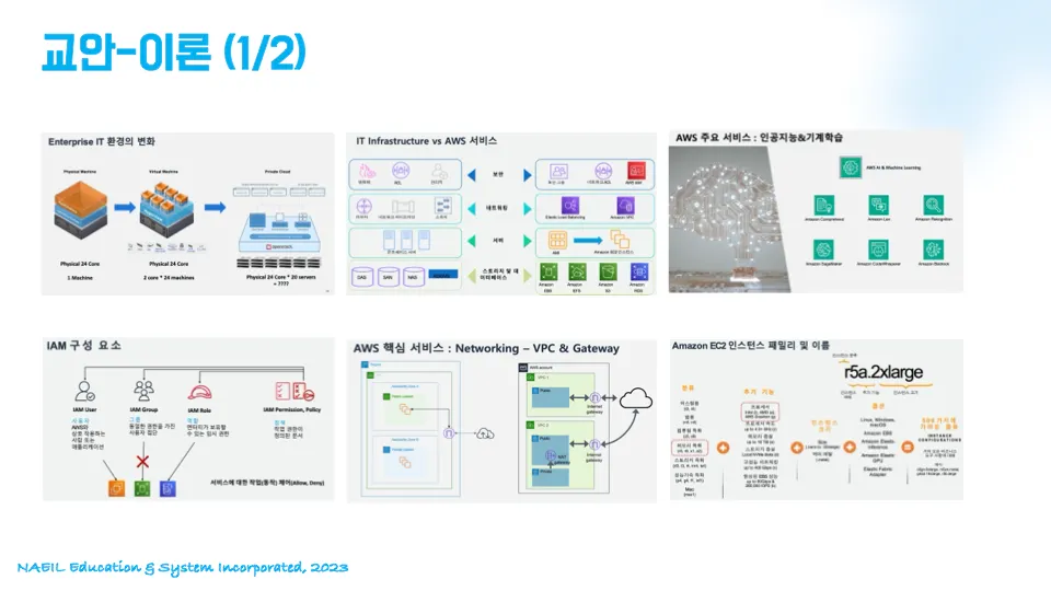 교육 주요 내용 : 클라우드컴퓨팅 개념, AWS 서비스 실습(EC2, S3)