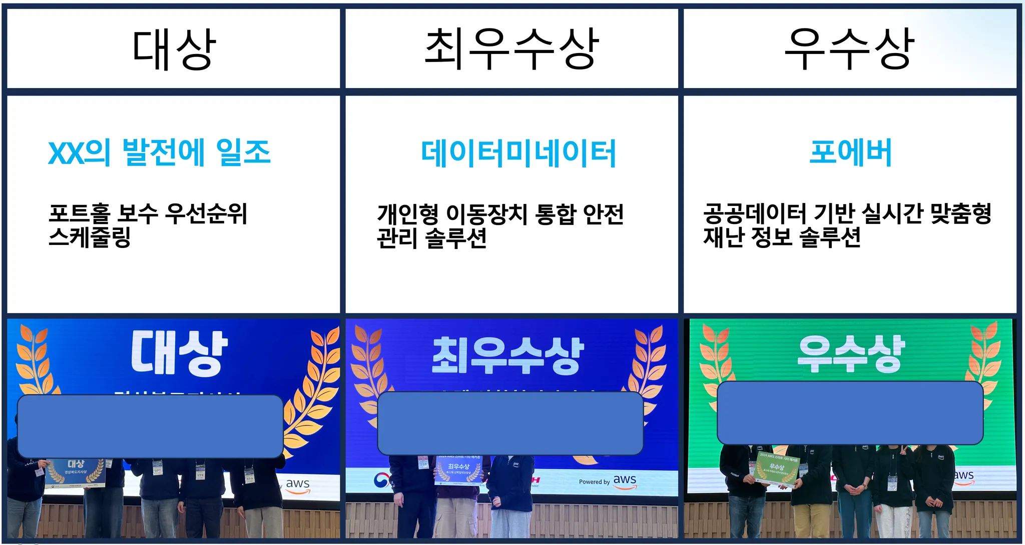 시상규모 : 대상 150만원(1팀), 최우수상 100만원(1팀), 우수상 50만원(1팀)