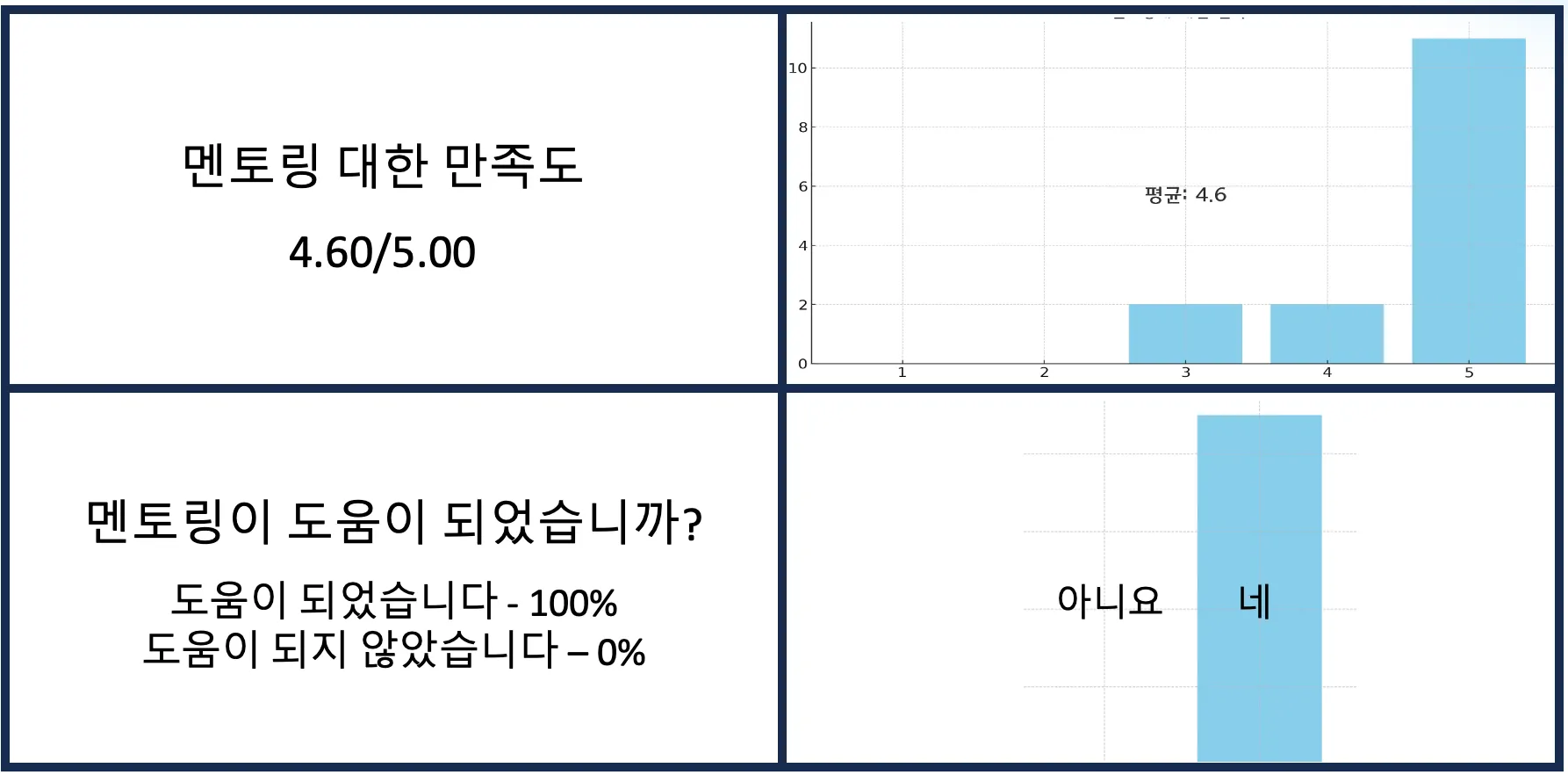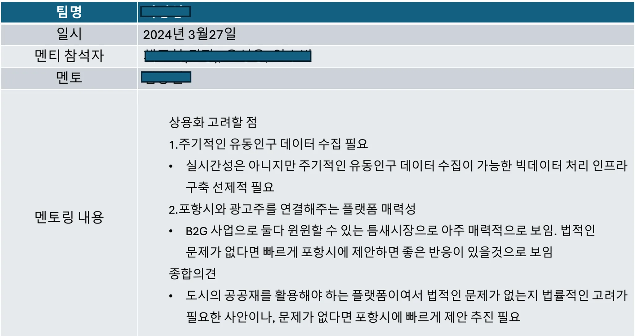 방향성을 확인할 수 있다는 점에서 좋았고, 기술멘토와 아이디어멘토 각각 한분씩 두분이 계신것도 좋았습니다