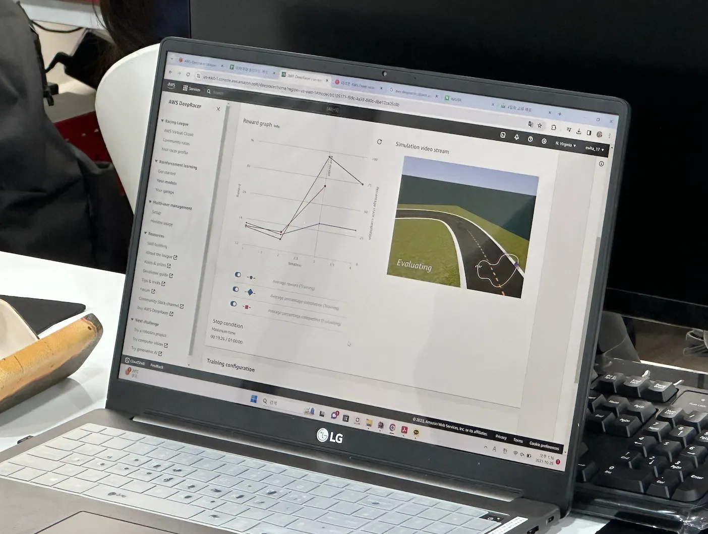 이번 교육은 교육에서 끝나는 것이 아니라 교내 경진대회를 통해 AWS AI/ML 서비스를 사용하여 딥레이서를 직접 물리트랙에서 대회를 진행하고, 발표심사를 통해 참가자들이 어떤 알고리즘을 통해 어떤 결과를 냈고, 이론과 실제결과 의 차이를 분석하고 어떤 실패와 성공의 과정을 거쳤는지 까지 종합적으로 판단하였습니다.