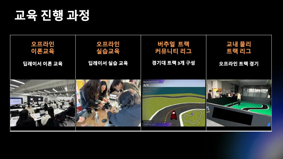 교육과정 : 온라인이론 > 오프라인실습 > 버추얼트랙 리그 > 오프라인 트랙 리그 > 리그 우승 시상
