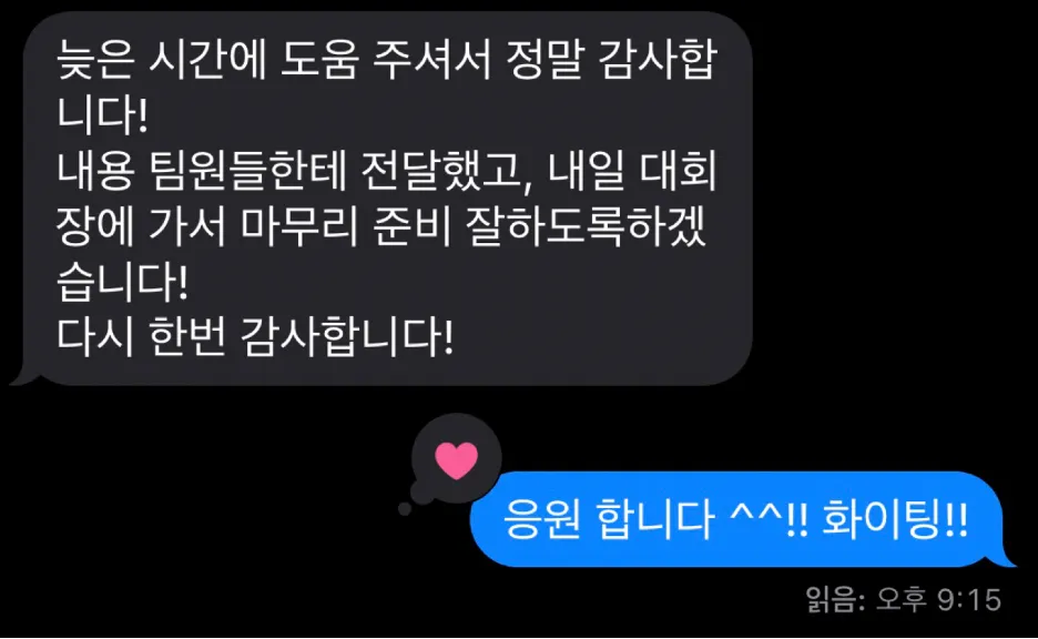 기술적 조언을 받을 수 있다는 점, 어떤 것을 지향하는 대회인지에 관한 조언을 받을 수 있어서 좋았습니다