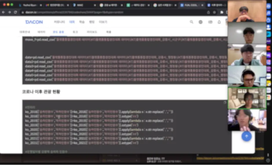 라이브러리는 필요한 상황에서 적합한것을 골라서 사용함. 모든것은 충족하는 라이브러리는 없음. 멘토가 데모를 보여줌(교통, 문화, 통신 데이터 관련). 참고로 데이콘 을 찾아보면 참고할만한 데이터가 많이 있음