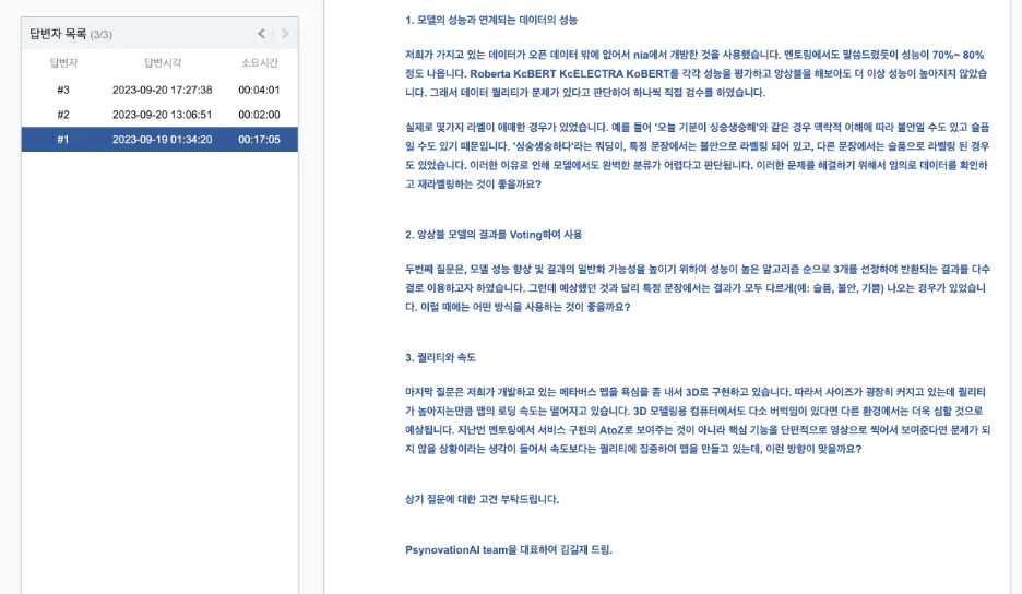 4 | Psynovation AI | 9.16 토 21시 | 9.29 화 17시 | 김XX(팀장), 박XX, 김XX | |