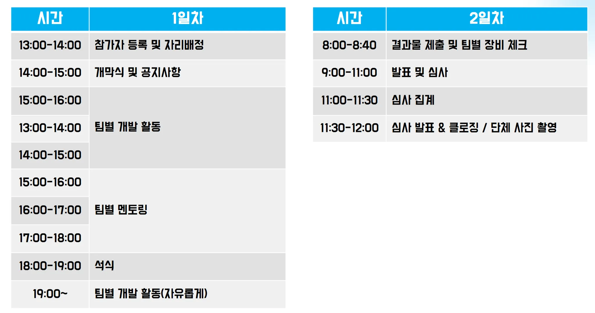 현장 멘토링 : 대회장 현장에서 저녁7시-10시까지 멘토링 진행