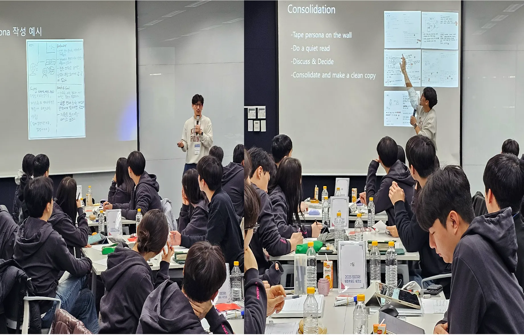 단체로 서로 이야기 나누며 생각을 비교하는게 재밌었습니다.