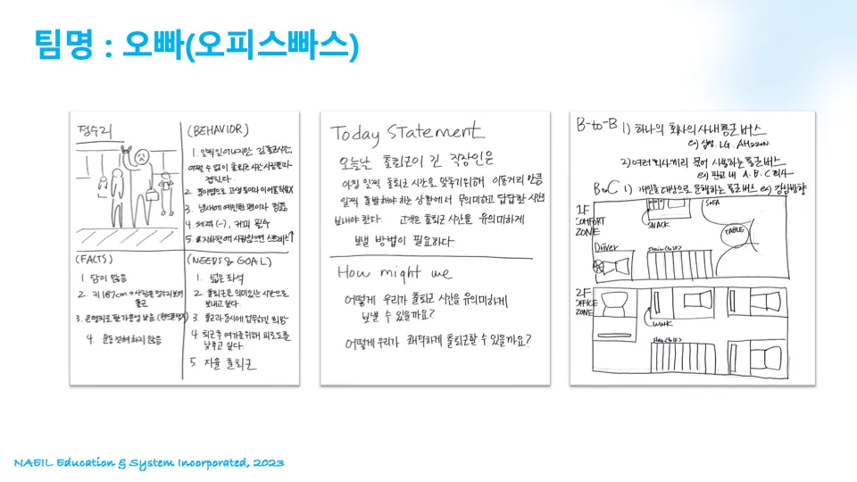 짧은 시간이었지만 아이디어 창출에 대한 방법을 실용적으로 체험할 수 있는 좋은 기회였습니다. 앞으로 아이디어 창출 시에 많이 사용할 것 같습니다.