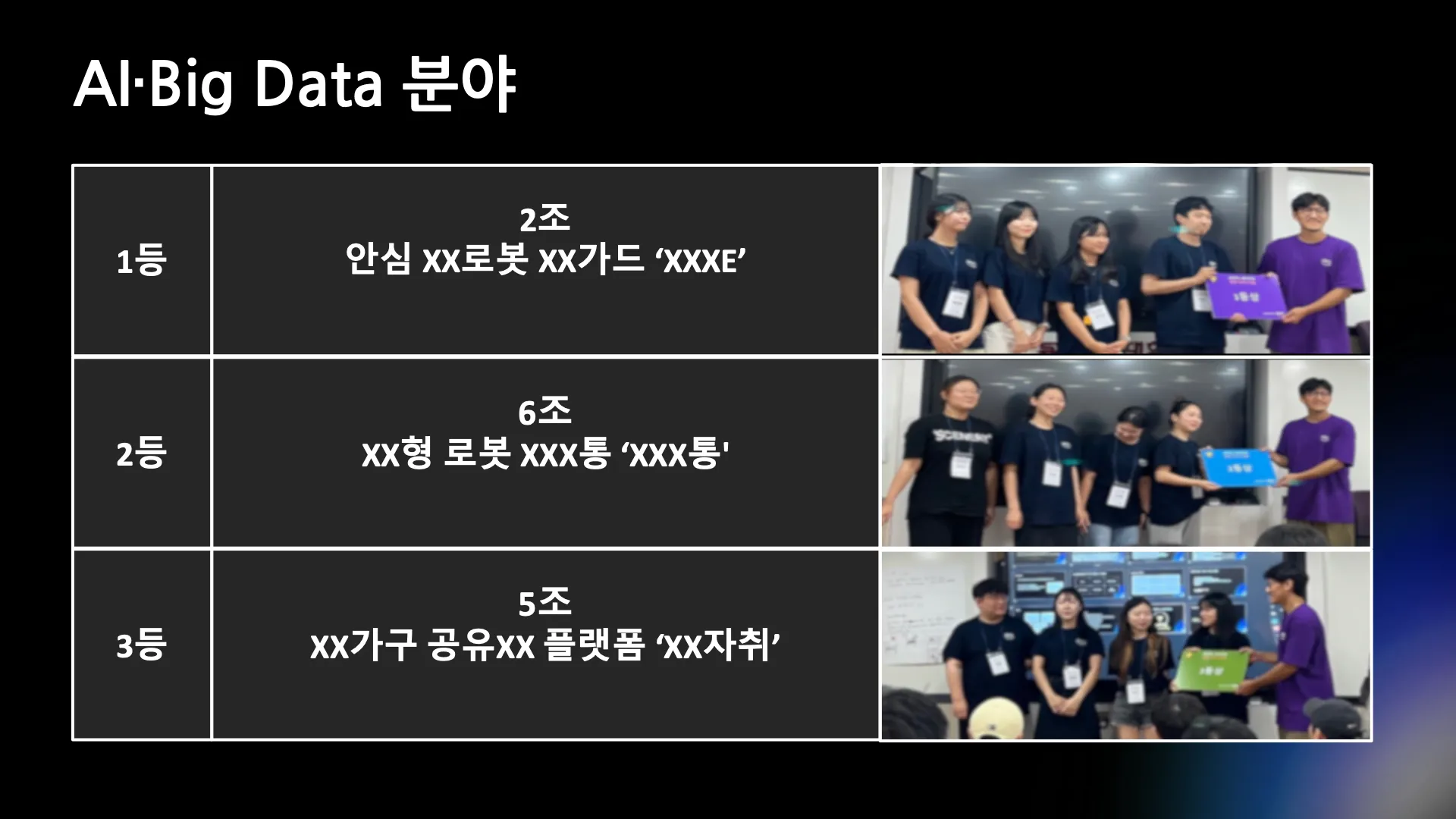 시상규모 : 각분야(AI, 백엔드) 1등, 2등, 3등