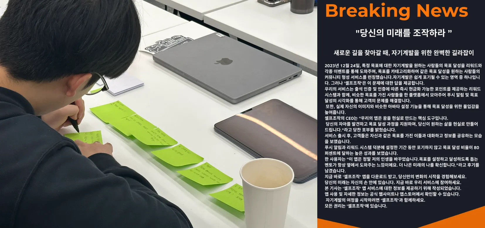 말 그대로 입니다. 일반적인 기업에서 제품 개발시 마지막에 하는 제품출시 홍보 기사작성/FAQ/고객 경험 작성을 가장 먼저하고 제품개발 은 가장 마지막에 진행합니다.