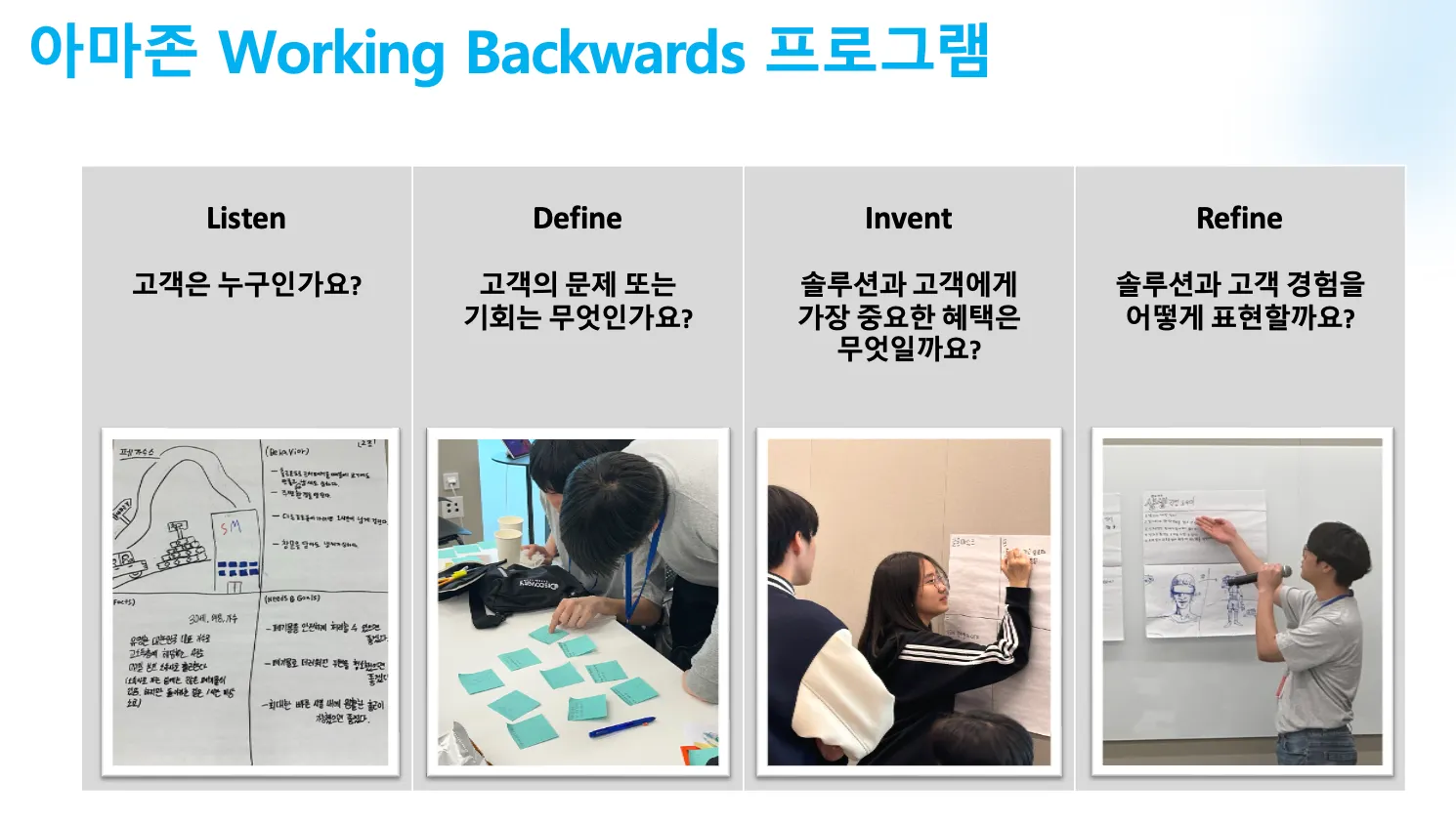 아마존 직무 체험 – Amazon Working Backwards | 5 | 13:00-14:00 | 고객 분석과 페르소나 만들기 | |